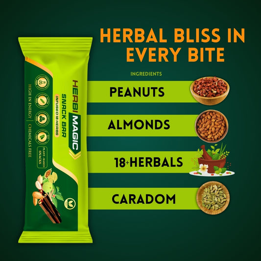 HERBI MAGIC Snack Bars – Pack of 10, 2.6g Protein Per Serve, 18 Herbs with Almond, Peanut, Holy Basil & Inknut, Plant-Based, Sugar-Free Protein Bars for Quick Breakfast, Running, Workouts & Travel