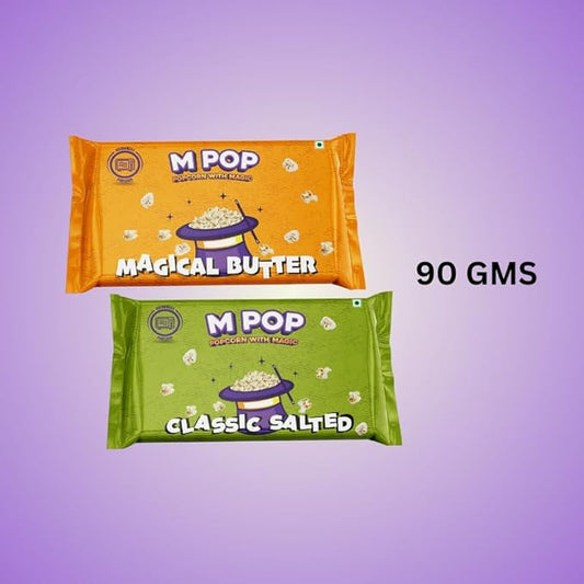 M POP Combo of Magical Butter & Classic Salted Microwave Popcorn Instant Popcorn with Magic | Theatre Like Popcorn at Home (Pack of 4, 2 Pieces each)